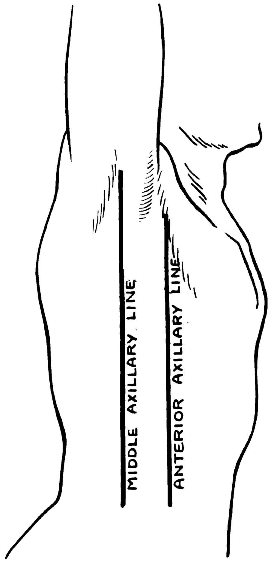 Anterior axillary line: imaginary line parallel to the midclavicular line beginning at the anterior axillary fold.