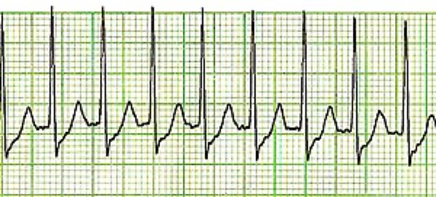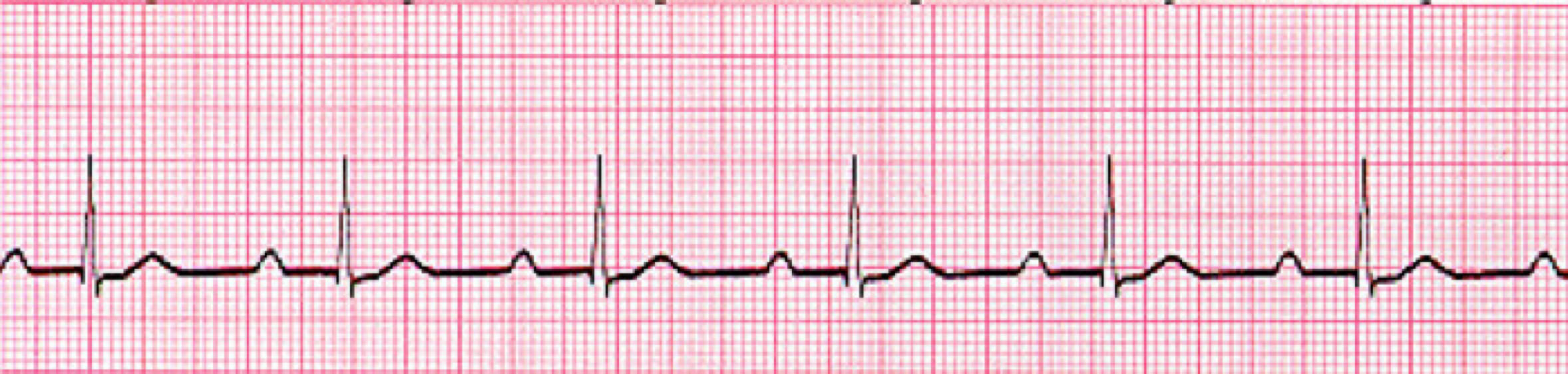 For example, the following tracing reveals regular sinus rhythm with one PAC.