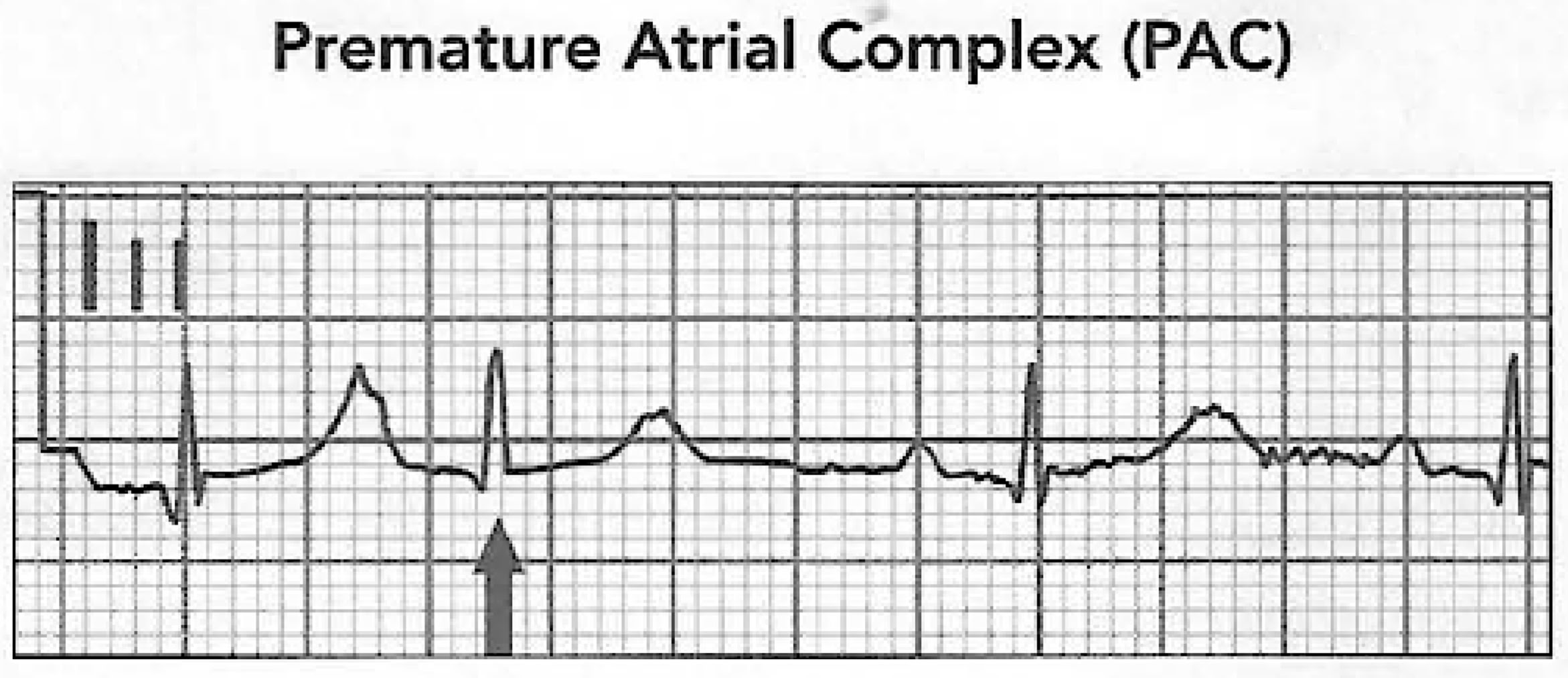 Premature atrial complex (PACS): are the result of electrical activity that originated in the atria.