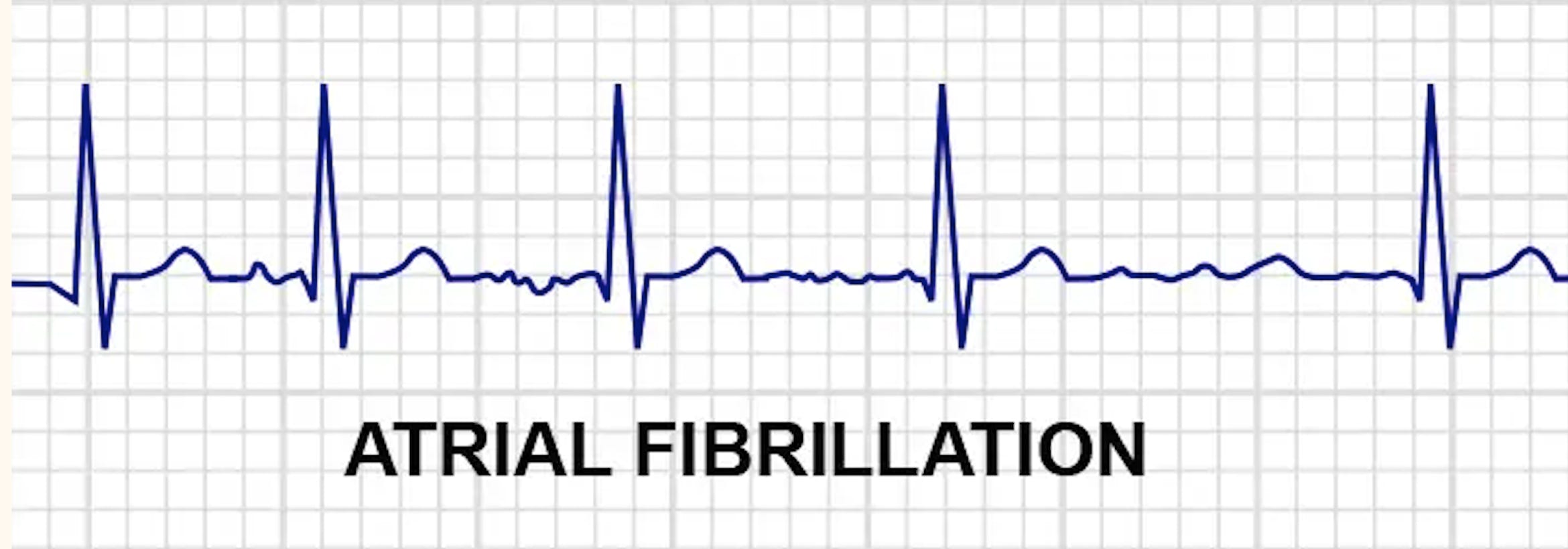 Atrial fibrillation: (often called A-fib) is a very common dysrhythmia , especially in older patients.
