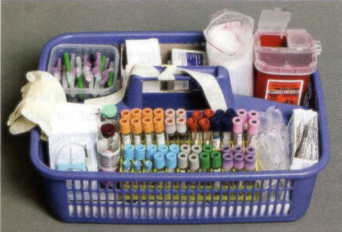 Phlebotomists use a portable tray to carry all necessary equipment. You are responsible for making sure that your tray is well stocked, clean, and organized at all times.