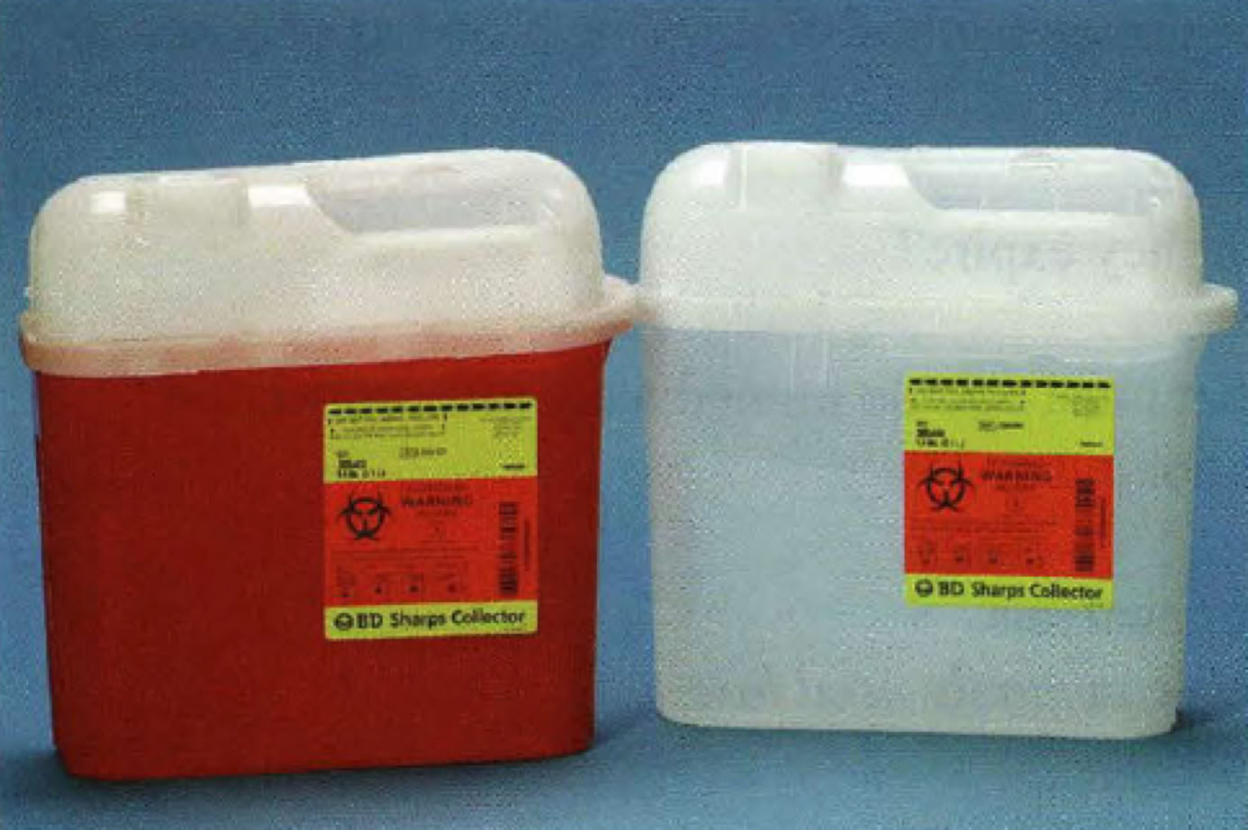 a hard plastic container that is used to safely dispose of hypodermic needles and other sharp medical instruments, such as an IV catheters and disposable scalpels. Sharps containers may be single use which are disposed of with the waste inside.