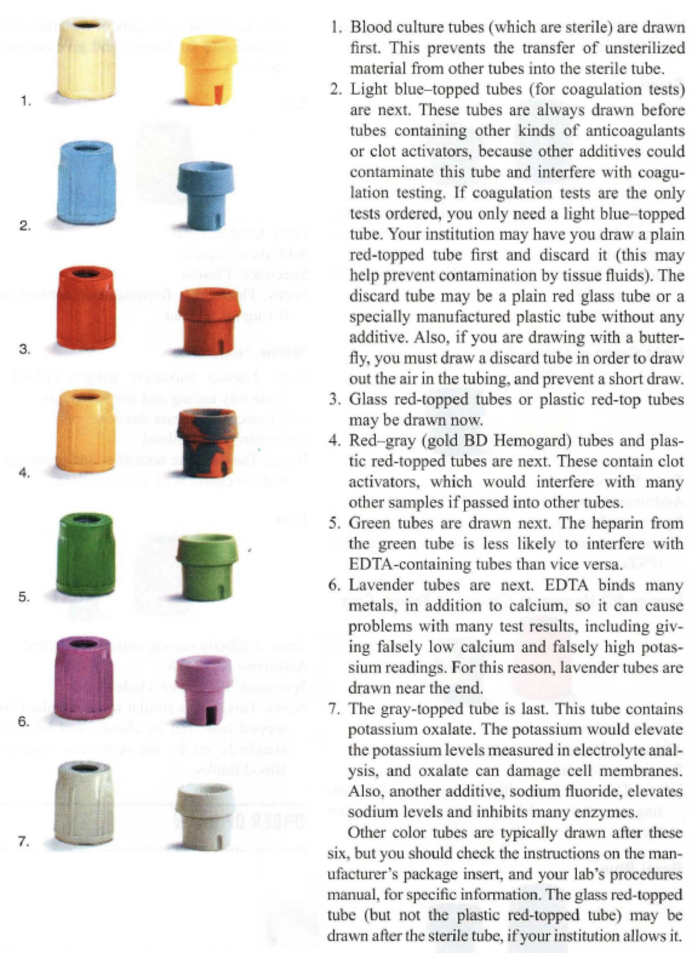 Learning what each color signifies, and in what order different-colored tubes should be drawn, is essential for a phlebotomist.