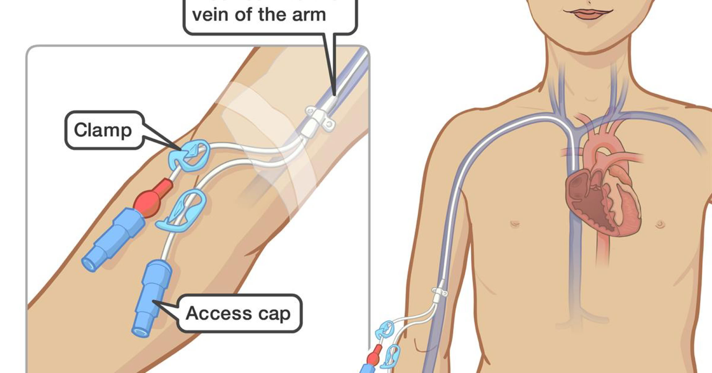 Central Venous Catheters are inserted from the left arm and empty into the heart.